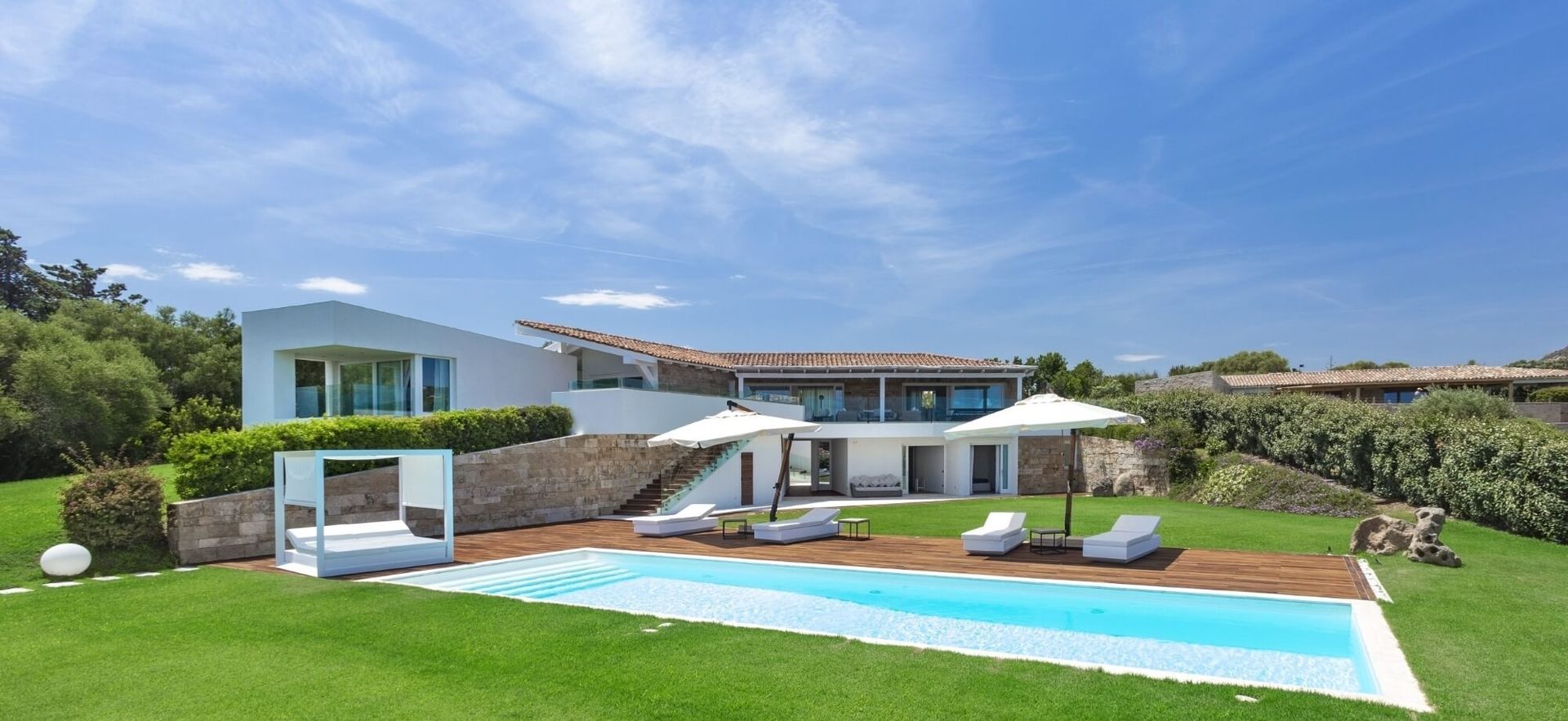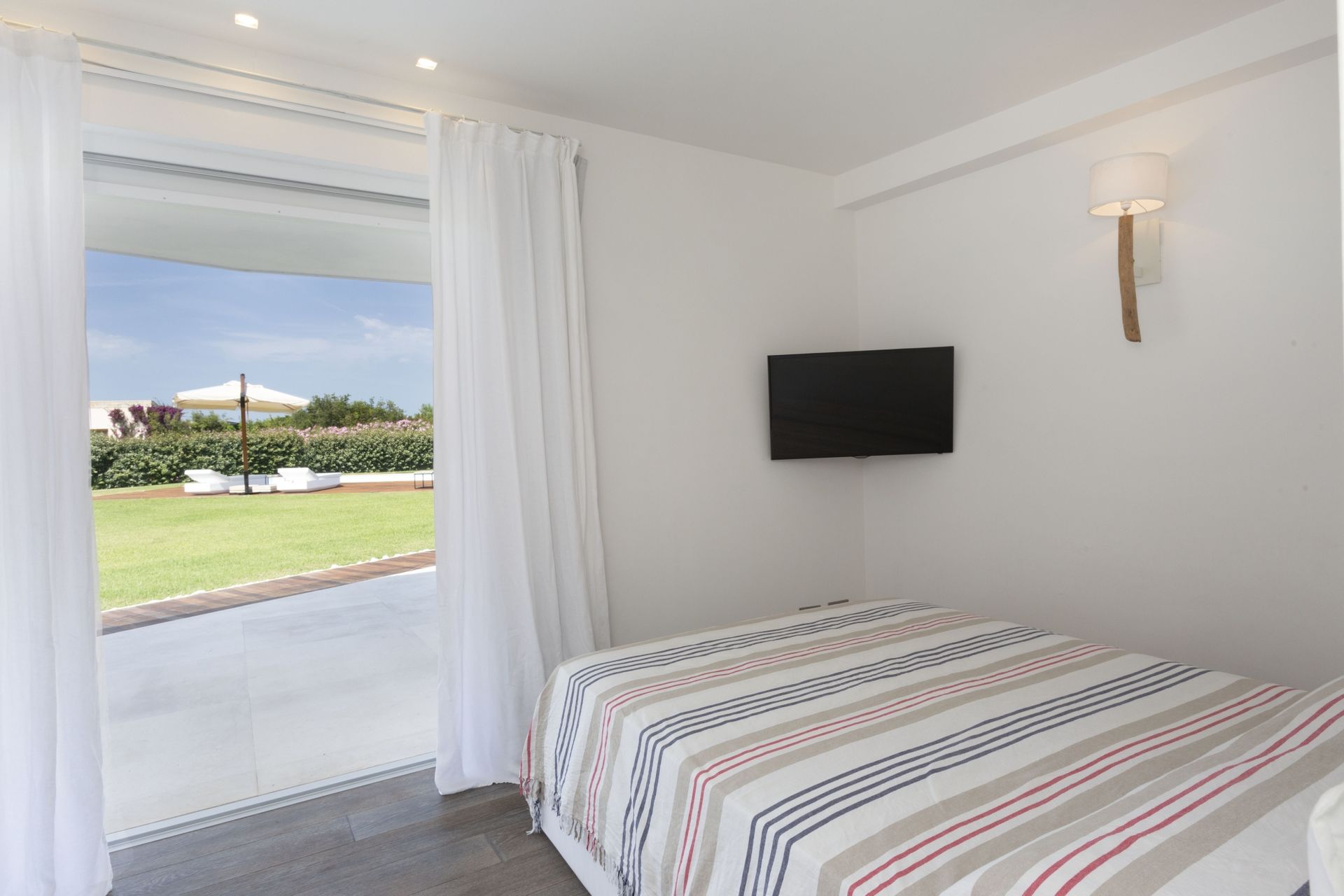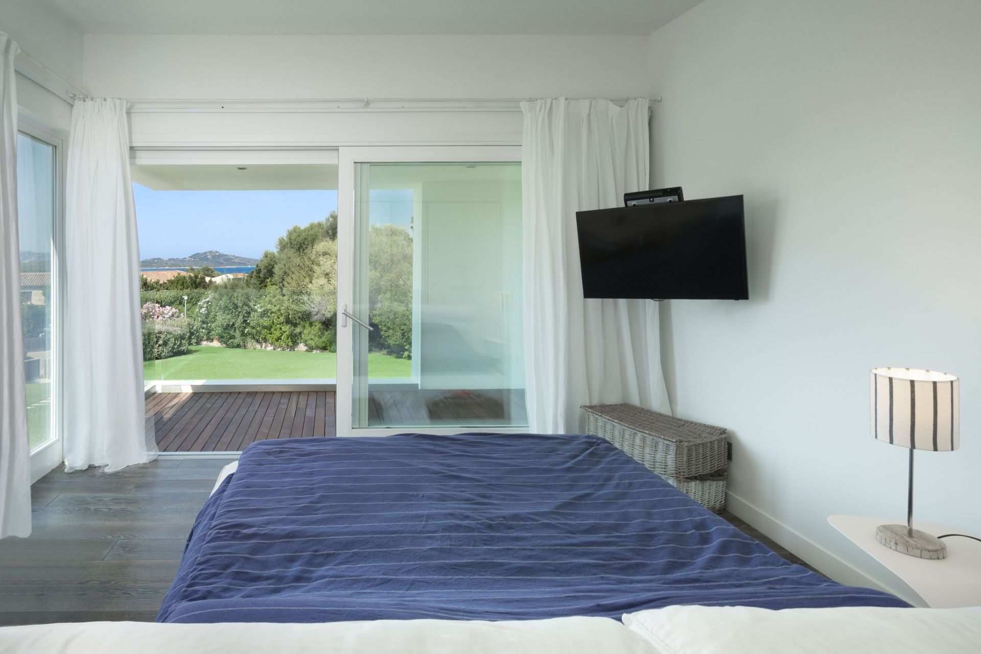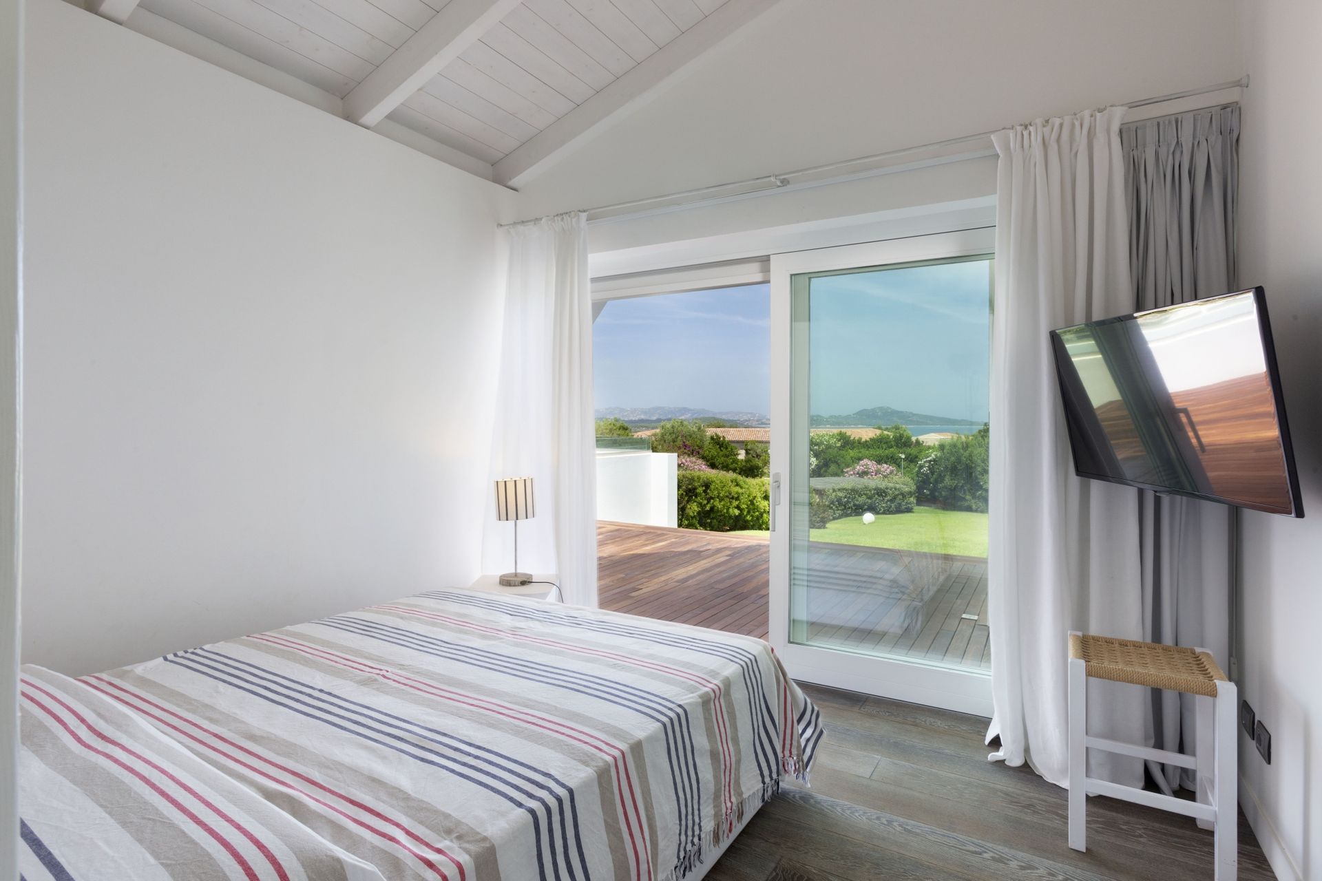 With its privileged position that offers an unforgettable panoramic view of the Lu Impostu Bay, one of the most renowned beaches in Sardinia, the magnificent villa stands out for the essentiality and geometry of its shapes and furnishings.